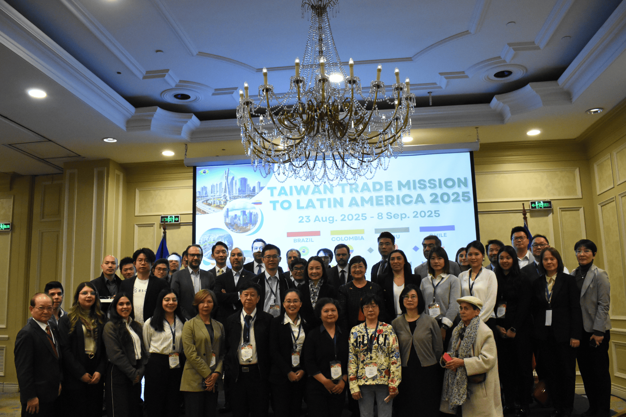 經濟部國際貿易署與外貿協會共同籌組之2025年「拉丁美洲拓銷團」訪問智利,並於9月4日在首都聖地牙哥Ritz Calrton飯店舉行「台智貿易洽談會」,活動開幕式由駐智利代表處劉代表聿綺主持,並與在場台灣及智利企業、智利經濟部、智利全國工業總會及聖地牙哥市商會等重要官方及公協會代表交流。