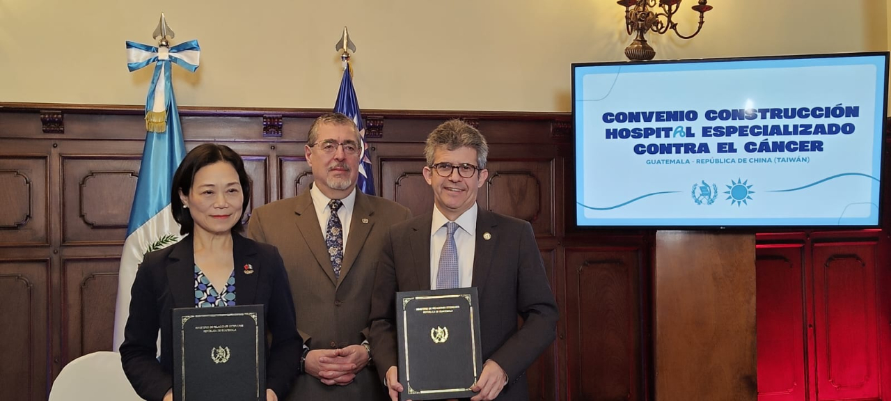 El convenio del “Proyecto de Construcción del Hospital Especializado contra el Cáncer”, firmado hoy en el Palacio Nacional de la Cultura por la embajadora Vivia Chang y el ministro Joaquín Barnoya del Ministerio de Salud Pública y Asistencia Social, con el testimonio del presidente de la República Bernardo Arévalo de León, reafirma el firme compromiso de Taiwán de colaborar estrechamente con el Gobierno de Guatemala en favor del bienestar del pueblo guatemalteco.