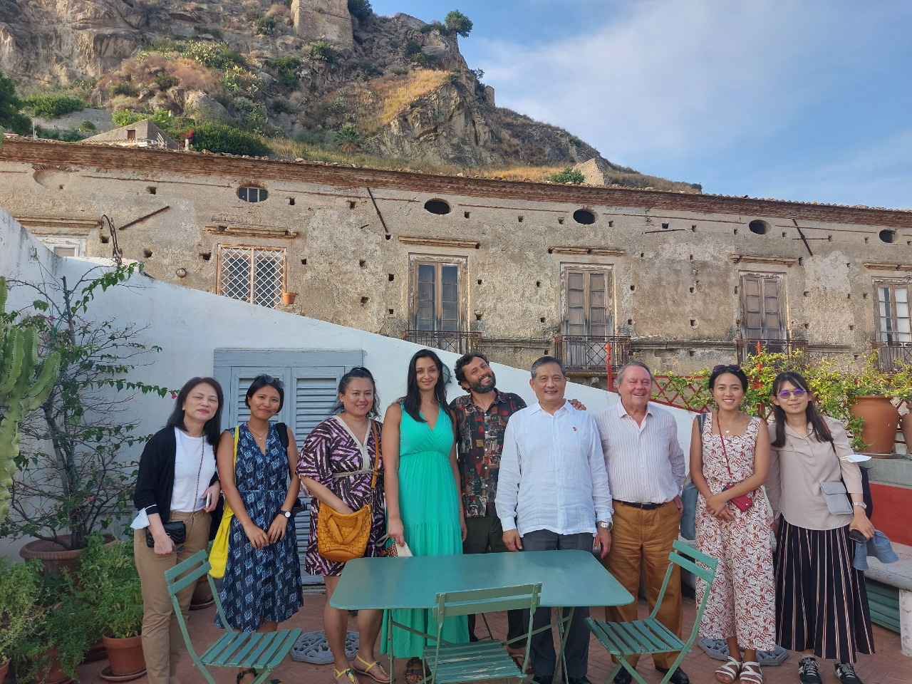 駐義大利代表處大使李新穎(右4)及文化組長鄧美容(左1)與瓜林巴國際電影節藝術總監Giulio_Vita(右5)、參展臺灣導演陳潔瑤(左3)、謝雅茹(左2)及插畫家廖苡甯(右2)等合影。