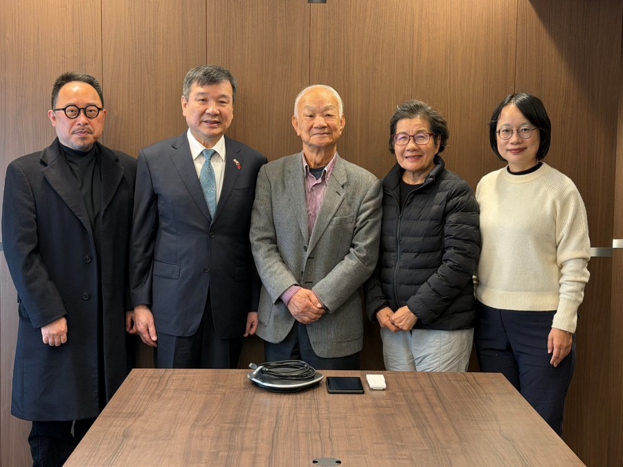 記念合影(左起台灣文化中心曾鈐龍主任、駐日大使李逸洋、吳晟老師、吳晟老師夫人莊芳華、吳晟老師女兒吳音寧)