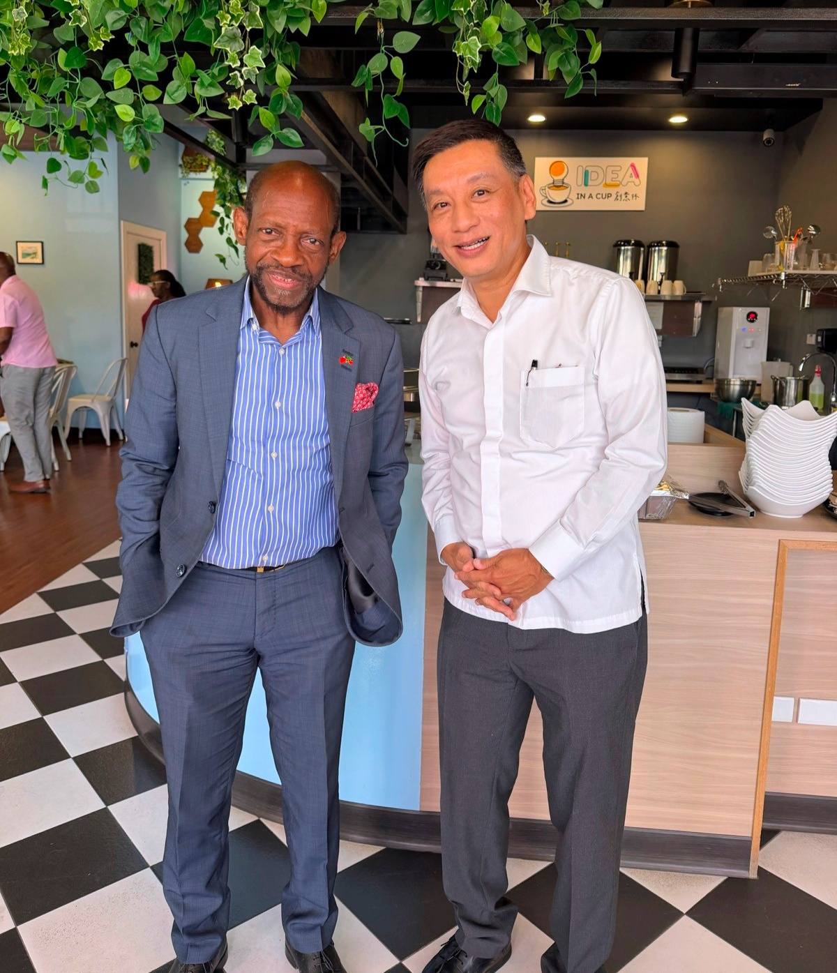 本館於3月27日在當地台灣餐廳「創意杯」(Idea in a Cup)設宴,款待克國外交部長道格拉斯及全體同仁,以表達對過去一年來鼎力協助的誠摯感謝。席間,道格拉斯外長致詞,感念台克兩國深厚的友誼與豐碩的合作成果,並期許未來持續緊密合作,共同促進兩國的繁榮發展。