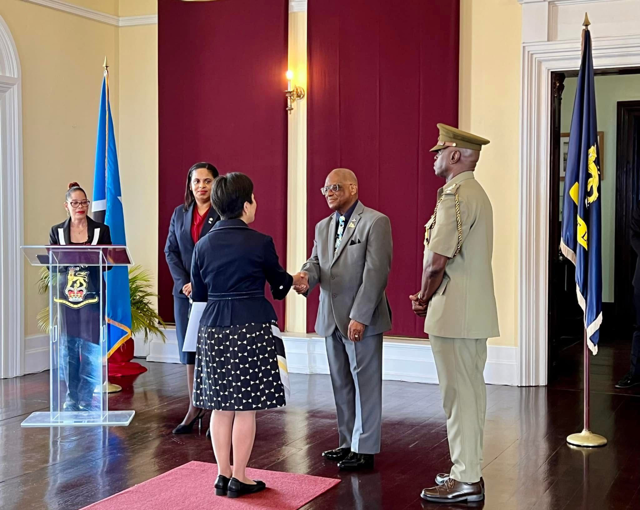 駐聖露西亞大使蘇瑩君向聖露西亞總督查爾斯呈遞到任國書