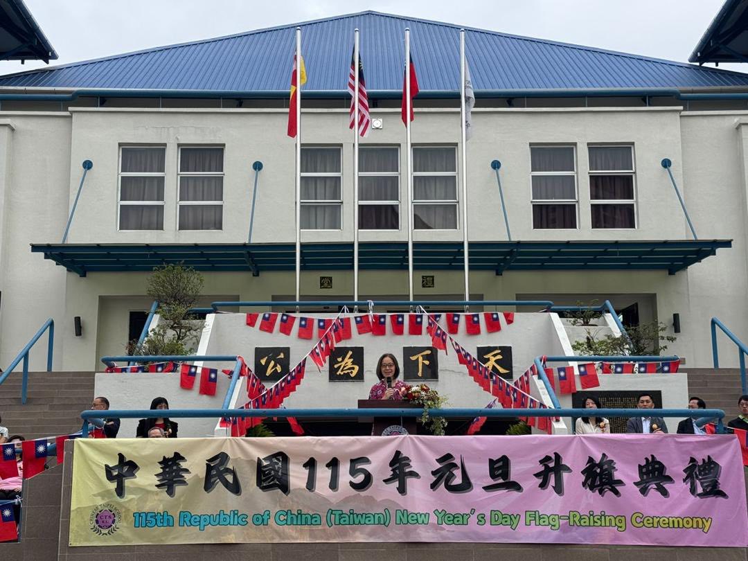 Representative Phoebe Yeh and colleagues from the Taipei Economic and Cultural Office in Malaysia extended warm New Year greetings to everyone at the 2026 Chinese Taipei School Kuala Lumpur New Year Flag Raising Ceremony and School Fair, hosted by Mr. Wang Jin Tsorng, the newly appointed Chair of the Board, and Ms. Cheng Ya Fen, the Principal on January 1, 2026.