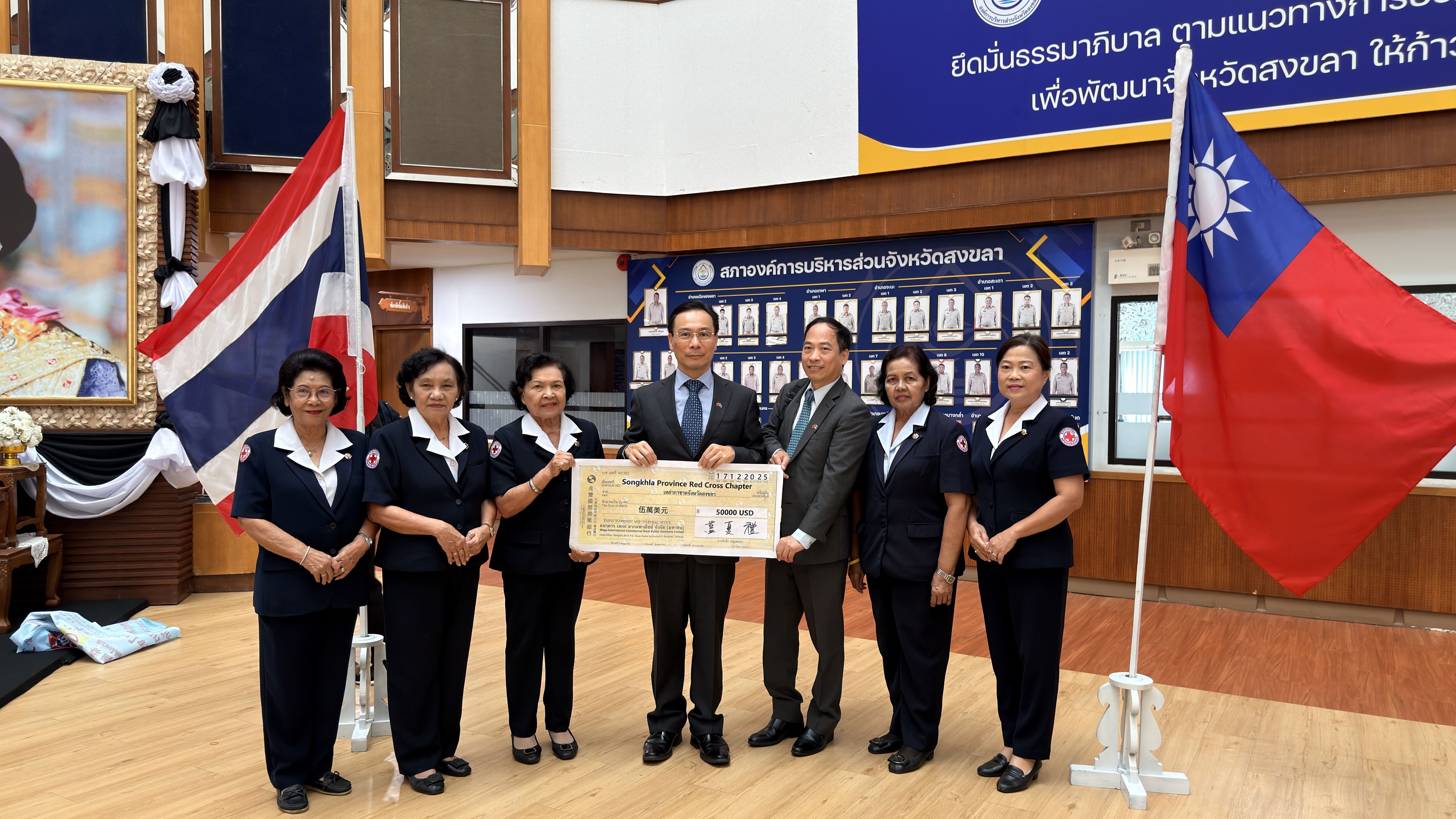 รัฐบาลสาธารณรัฐจีน (ไต้หวัน) แสดงความห่วงใยต่อเหตุการณ์น้ำท่วมในภาคใต้ของประเทศไทยและการฟื้นฟูเยียวยาอย่างต่อเนื่อง นอกจากจะได้บริจาคเงินให้แก่ชมรมผู้ประกอบการค้าไต้หวันภาคใต้เมื่อวันที่ 6 ธันวาคมที่ผ่านมา เพื่อแสดงความห่วงใยและให้กำลังใจกับนักธุรกิจชาวไต้หวันและชาวจีนโพ้นทะเลที่ได้รับผลกระทบ เมื่อวันที่ 17 ธันวาคม ศกนี้ นายปีเตอร์ หลัน ผู้แทนรัฐบาลไต้หวัน สำนักงานเศรษฐกิจและวัฒนธรรมไทเป ประจำประเทศไทย (สำนักงานฯ) ได้รับมอบหมายจากรัฐบาลไต้หวันให้เดินทางไปยังภาคใต้ของไทยอีกครั้ง เพื่อมอบเงินสงเคราะห์จำนวน 50,000 ดอลลาร์เหรียญสหรัฐให้แก่เหล่ากาชาดจังหวัดสงขลา โดยเงินบริจาคนี้จะนำไปใช้ช่วยเหลือรัฐบาลท้องถิ่นและประชาชนในพื้นที่ทำการฟื้นฟูเยียวยาหลังอุทกภัย เพื่อช่วยให้ทุกคนกลับคืนสู่ชีวิตปกติโดยเร็วที่สุด