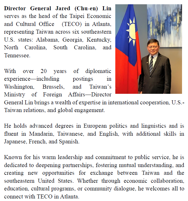 Director-General Jared Lin - Taipei Economic and Cultural Office in Atlanta 駐亞特蘭大台北經濟文化辦事處 ::: Skip to main content