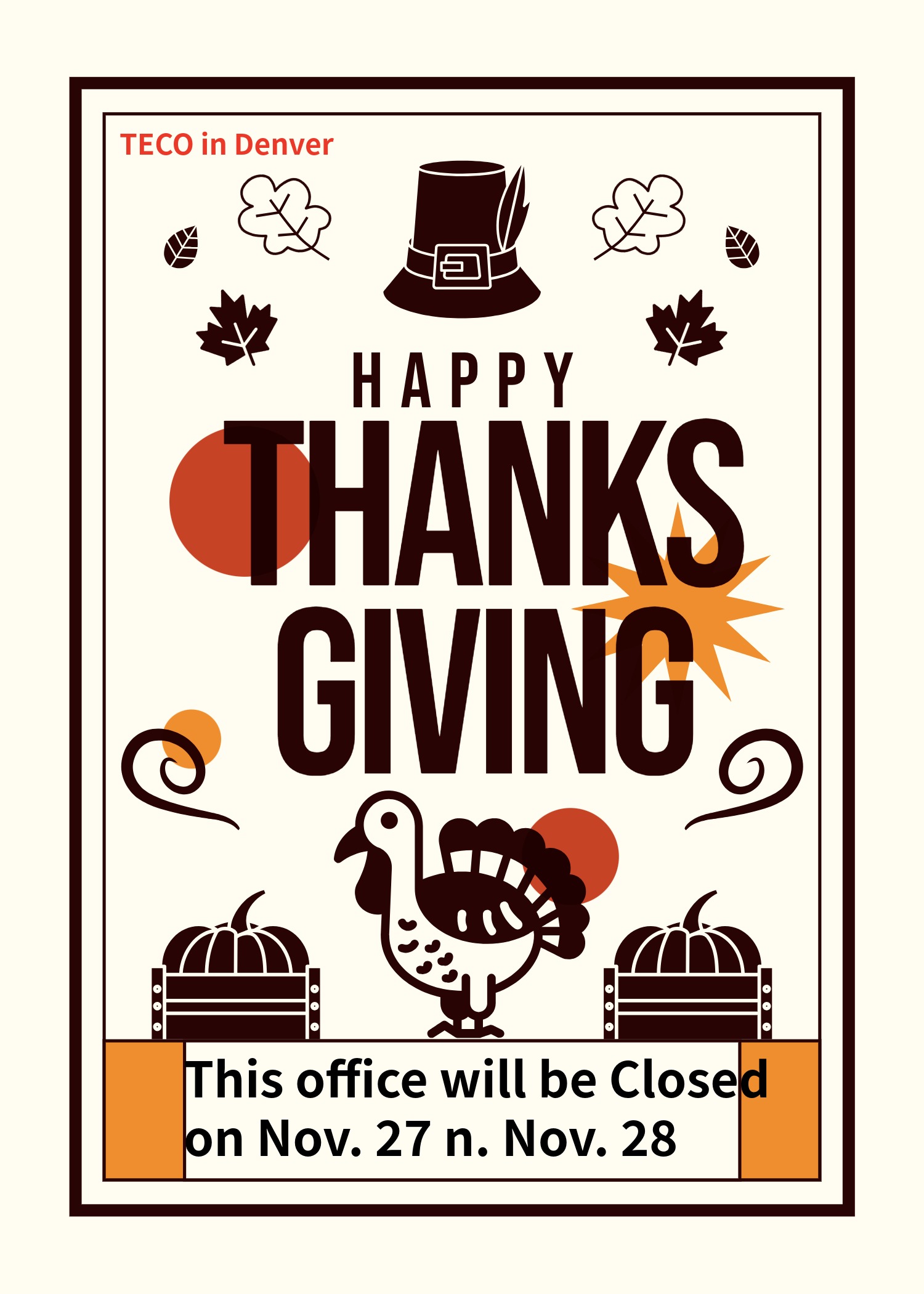 In observance of Thanksgiving, and Native American Heritage Day, the Taipei Economic and Cultural Office in Denver will be closed on Thursday, November 27th, and Friday, November 28th, 2025. If you need emergency assistance, please call (816) 522-9546.