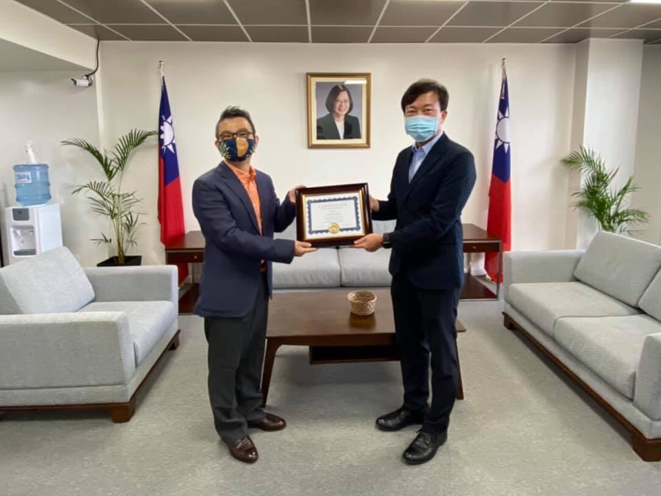110年3月11日本處陳總領事盈連頒發證書聘請HSVG公益行動公共衛生計畫處處長呂秉原擔任本... - 駐關島台北經濟文化辦事處 Taipei Economic and Cultural Office in Guam ::: 跳到主要內容區塊
