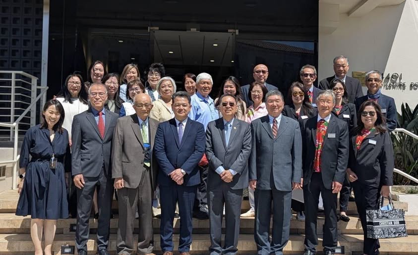 前排包括「南加州台灣客家會」梁政吉會長(前排左3)、「美國客家聯合會」陳智昇會長(前排右2)及「美國加州客家會」黃永鉅會長(前排左2)。