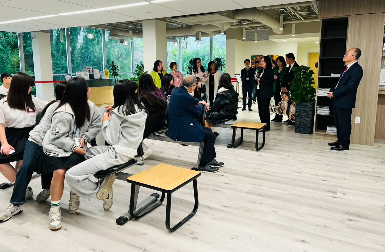 紀欽耀處長在本處接待由高雄女中校長鄭文儀率領之「雄中雄女美西參訪團」,和陪同參訪的美洲高雄中學、高雄女中聯合校友會許書怡會長一行,並導覽參觀本處新館舍。