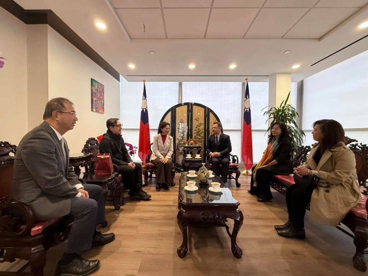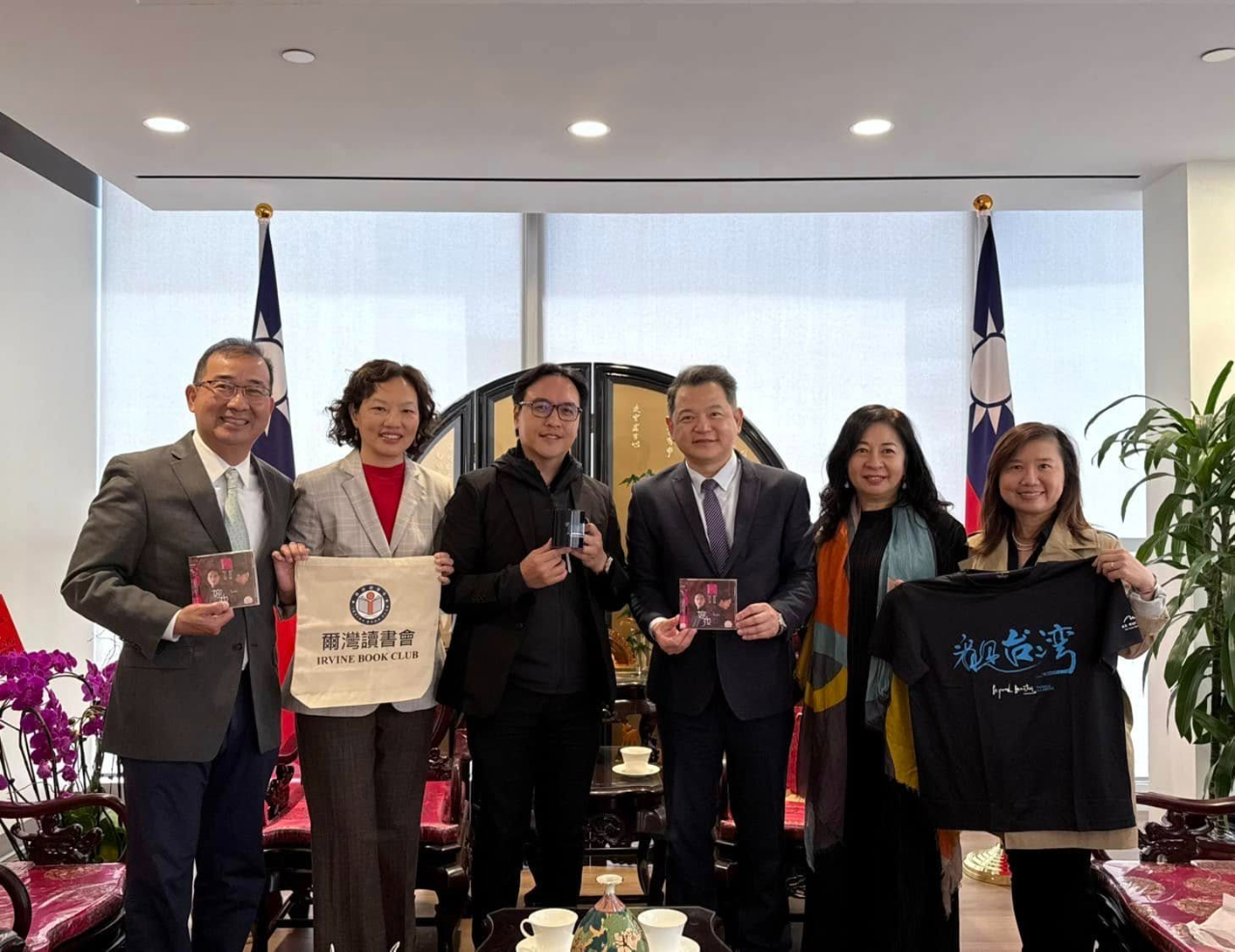 Director General Amino Chi was delighted to meet with the flute musician CEO Jen-Pin LIN of BONART, President Laura YEN of Irvine Book Club, and Founder Weilan YANG of iWeilan Cultural Forum at TECO-LA on April 3, 2025.