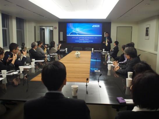 駐美投資貿易服務處於9月18日下午5時於駐紐約台北經濟文化辦事處首次舉辦Meet with CEO活動,邀請納斯達克(NASDAQ)上市公司Applied Optoelectronics, Inc. (AOI) 創辦人、董事長兼執行長林誌祥博士(Dr. Thompson Lin)擔任講者,簡介該公司光纖技術(Fiber-Optic Technology)及次世代網路架構(Next-Generation Network Infrastructure)。