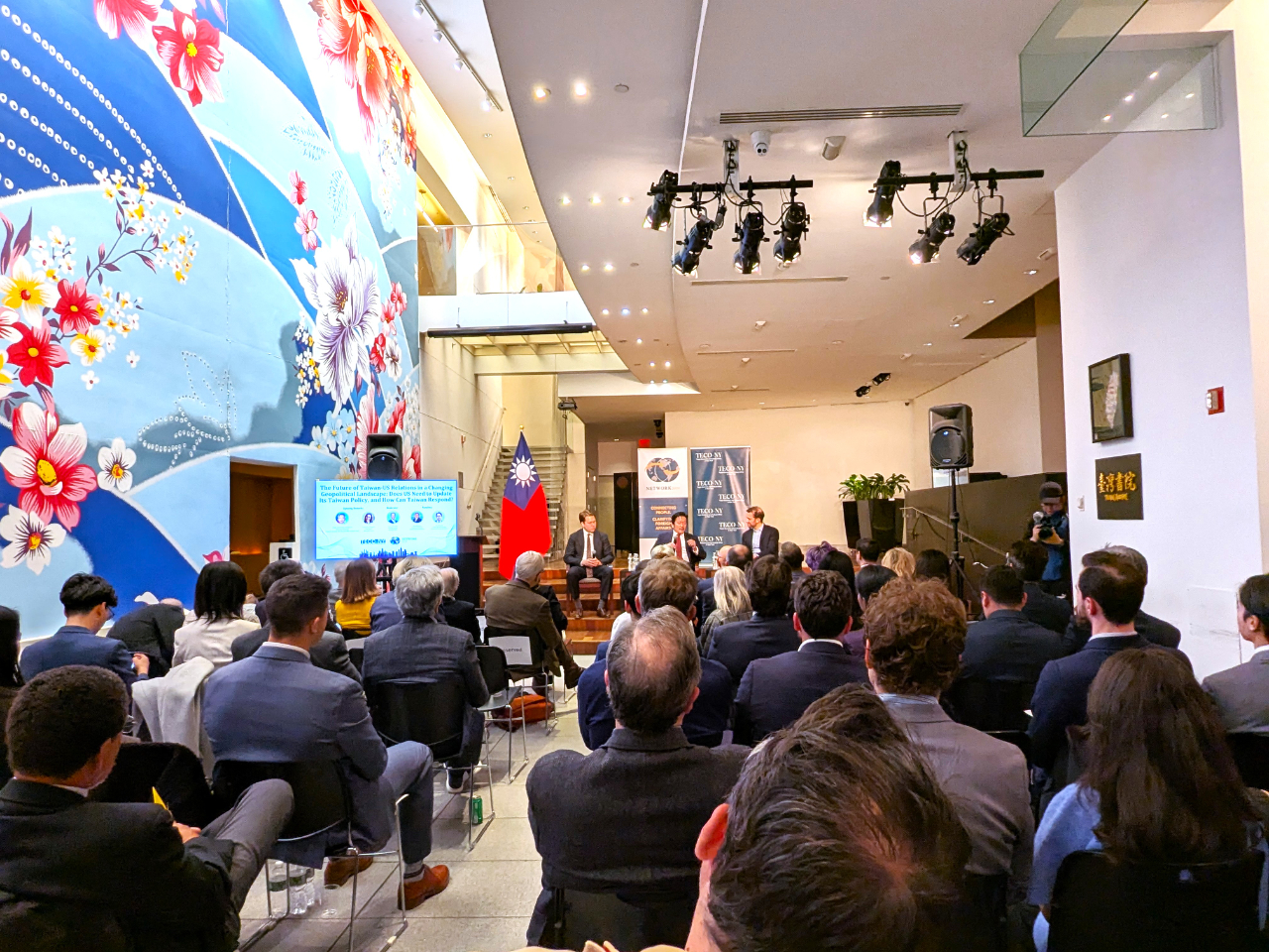 駐紐約台北經濟文化辦事處3月27日晚間與紐約智庫「Network 20/20」合辦「變局中的台美關係前景:美國是否需更新其對台政策,台灣又該如何因應?」(The Future of Taiwan-US Relations in a Changing Geopolitical Landscape: Does US Need to Update Its Taiwan Policy, and How Can Taiwan Respond?)座談會,由「戰略風險」(Strategy Risks)顧問諮詢公司執行長、前「新聞周刊」駐中記者石宇(Isaac Stone Fish)主持,華府「全球台灣研究中心」(Global Taiwan Institute)執行長蕭良其(Russell Hsiao)及紐約「外交關係協會」(Council on Foreign Relations)亞洲事務研究員石可為(David Sacks)擔任與談人,我邦交國駐聯合國常代及紐約外交使節團資深官員、智庫與學界人士、中外文媒體記者共近百人出席,現場互動及提問氣氛熱絡。