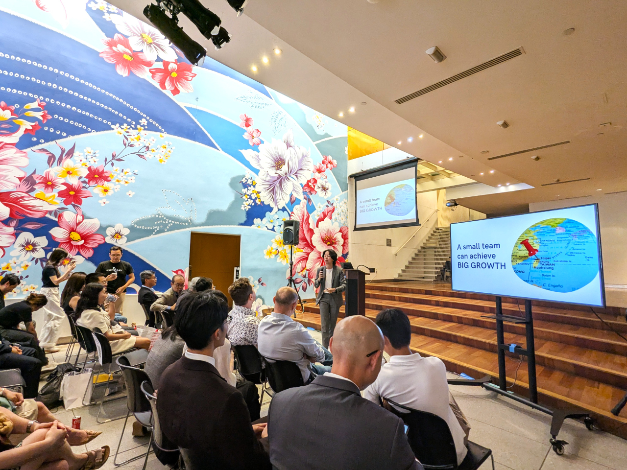 駐紐約經文處與經濟部中小及新創企業署IP2 Scaleout Program臺灣新創國際加速計畫執行單位,於本(6)月26日在本處大廳舉辦臺灣新創企業Demo Day,產品應用橫跨AI、IoT、醫藥、太空及時尚等領域,包含紐約台灣商會、奧地利駐紐約商務機構Advantage Austria,以及Unrelated Ventures、Quay Acceleration及Impact Hub New York Metropolitan Area等創育機構百餘位當地新創產業利害關係人與會交流。