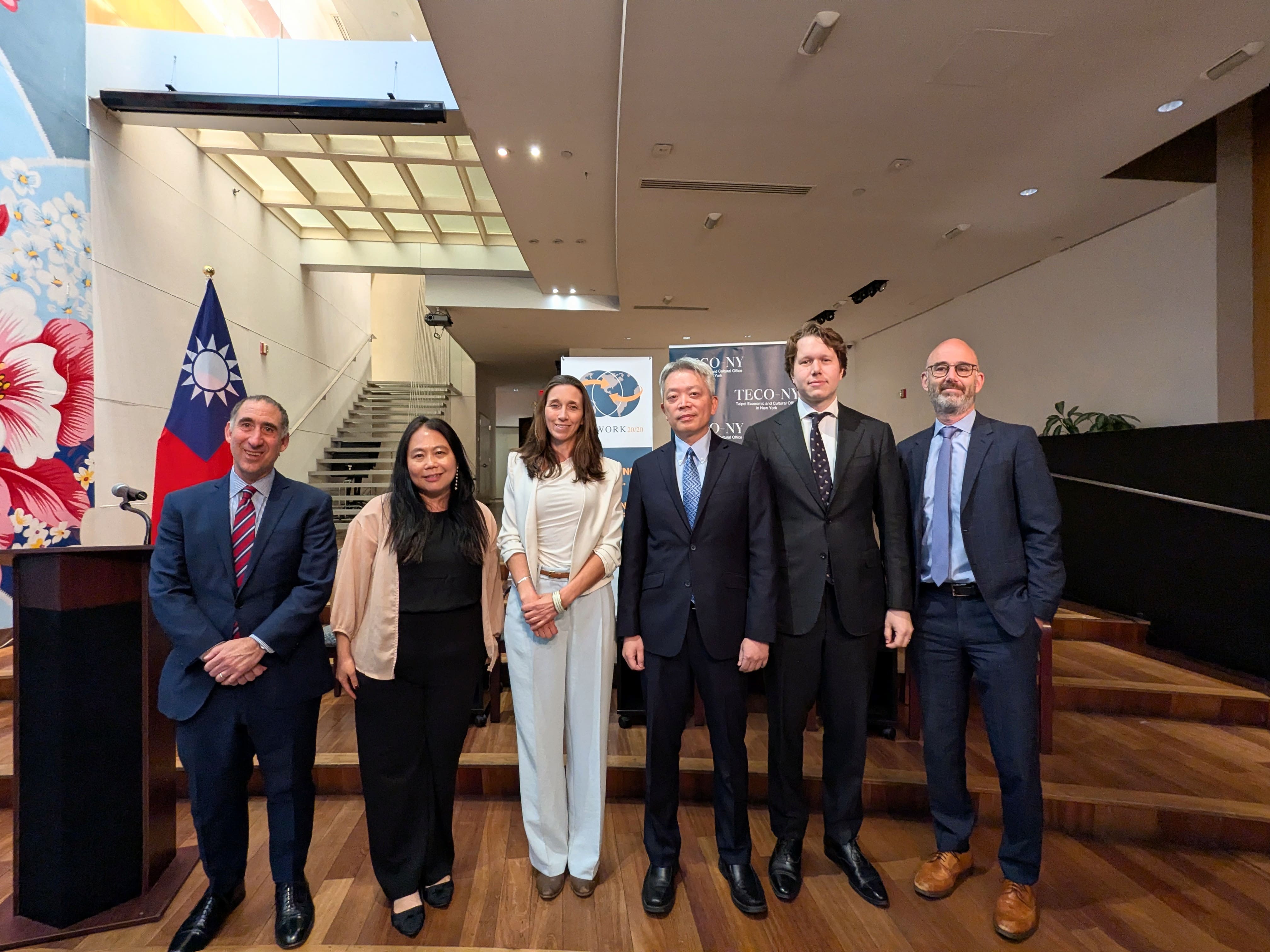 駐紐約台北經濟文化辦事處4月6日晚間與紐約智庫「Network 20/20」合辦「台灣在美國高科技供應鏈中的角色:機會與挑戰」(Taiwan's Role in the U.S. High-Tech Supply Chain: Opportunities and Challenges)座談會,由「外交關係協會」(Council on Foreign Relations)亞洲研究員石可為(David Sacks)主持,該會新興技術與國家安全講座教授暨數位與網路空間政策計畫主任Adam Segal、天普大學(Temple University)政治學教授暨「科技、民主與社會研究中心」海外資深研究員薛媖月(Roselyn Hsueh),及華府智庫「資訊科技與創新基金會」(Information Technology and Innovation Foundation, ITIF)全球創新政策副總裁Stephen Ezell擔任與談人,我邦交國駐紐約及外交使節團官員、智庫、學界及企業界人士、中外文媒體記者共約80餘人出席,現場互動及提問氣氛熱絡。