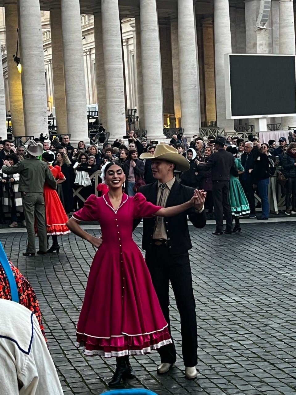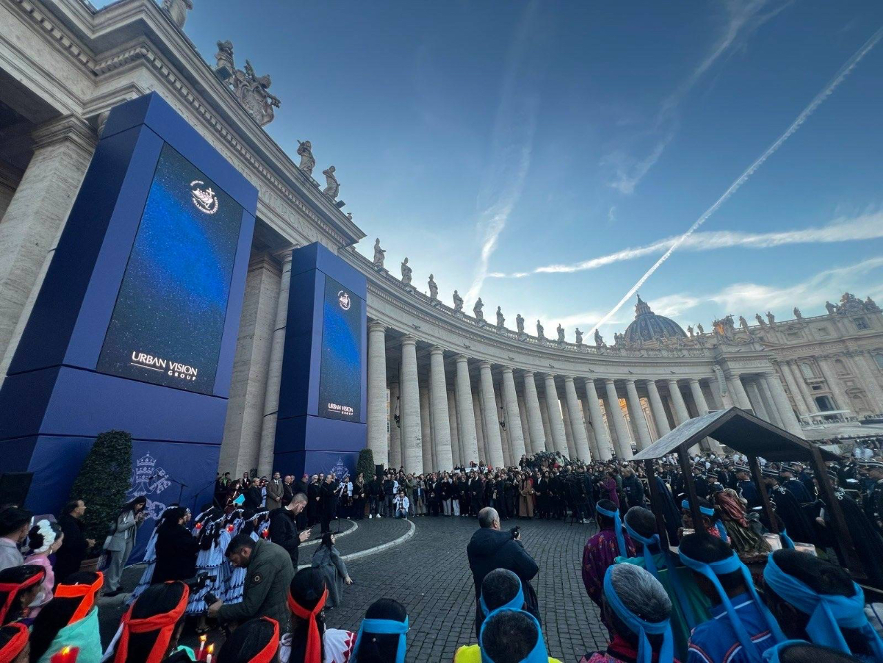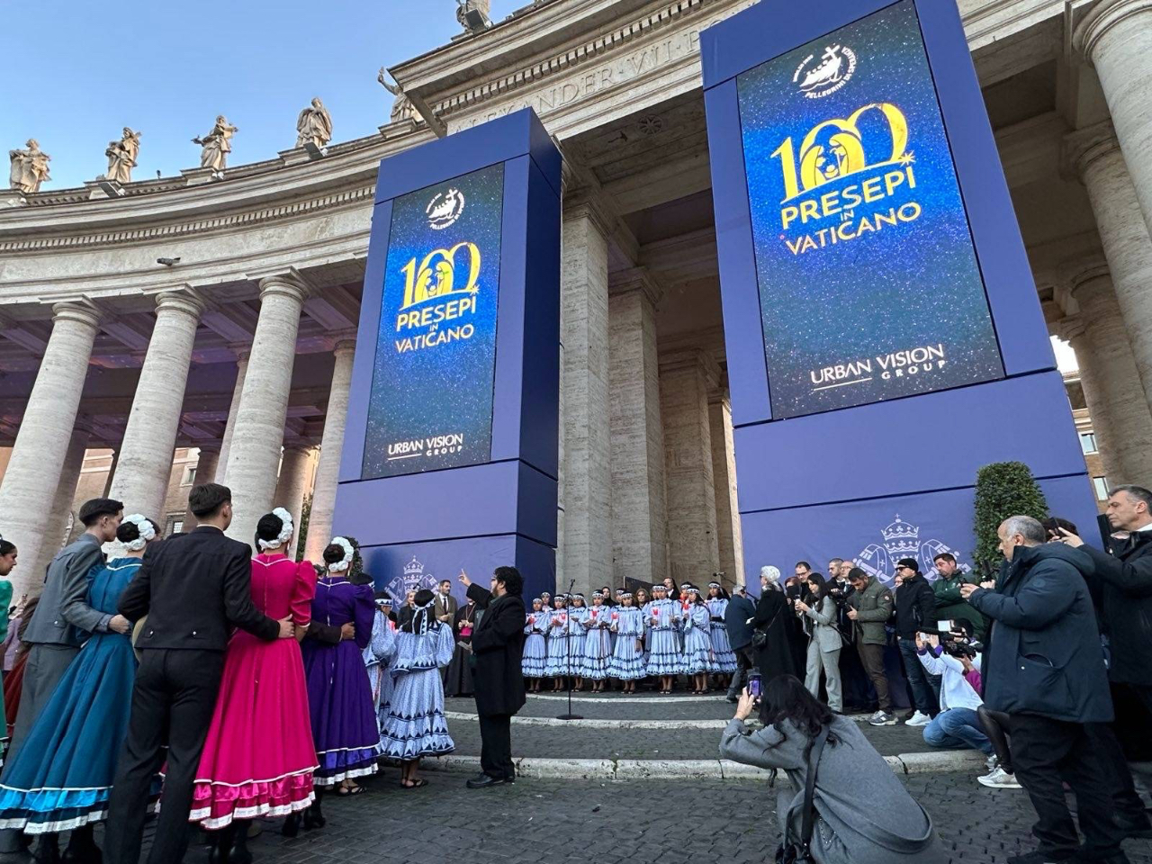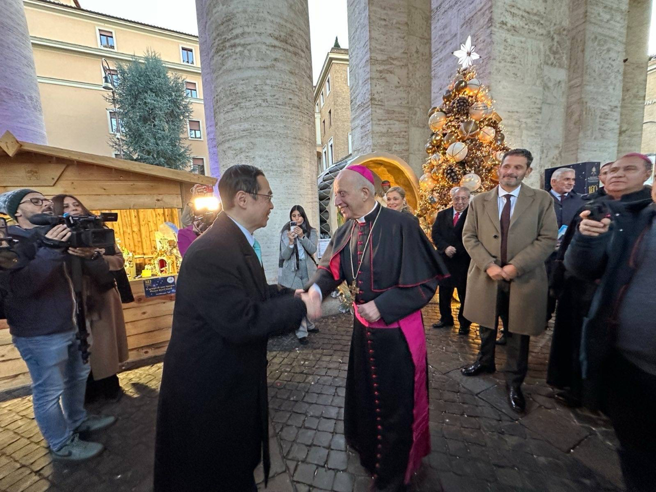 本館賀大使夫婦於12月8日「聖母無染原罪日」下午,應邀出席在聖伯多祿廣場所舉行之第八屆「梵蒂岡百座馬槽展」(100 PRESEPI IN VATICANO)開幕活動。本年大會邀請墨西哥兒童及舞蹈團體演出,外交團計有本館、墨西哥、波蘭、阿爾巴尼亞等多國大使出席,現場聚集約500名群眾,氣氛熱鬧溫馨。