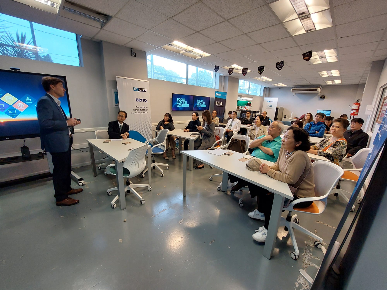 中華民國對外貿易發展協會(TAITRA)中南美洲拓銷團於本(113)年4月16日上午在本處經濟組陪同下參訪阿根廷資通訊產品製造及經銷商大廠PC ARTS公司,該司亦為我商華碩電腦(Asus)在阿銷售筆電的合作夥伴,該公司營運部經理Diego Pacheco向訪團成員介紹該公司在阿國營運情形,同時詳細解説阿國目前面臨之進口外匯管制問題及進口產品因政府課稅導致在阿國市場訂價偏高等議題,並與團員就阿根廷金融科技、智慧城市及資安等產業發展潛力交換意見,團員於交流時間踴躍提問,並表示獲益良多。