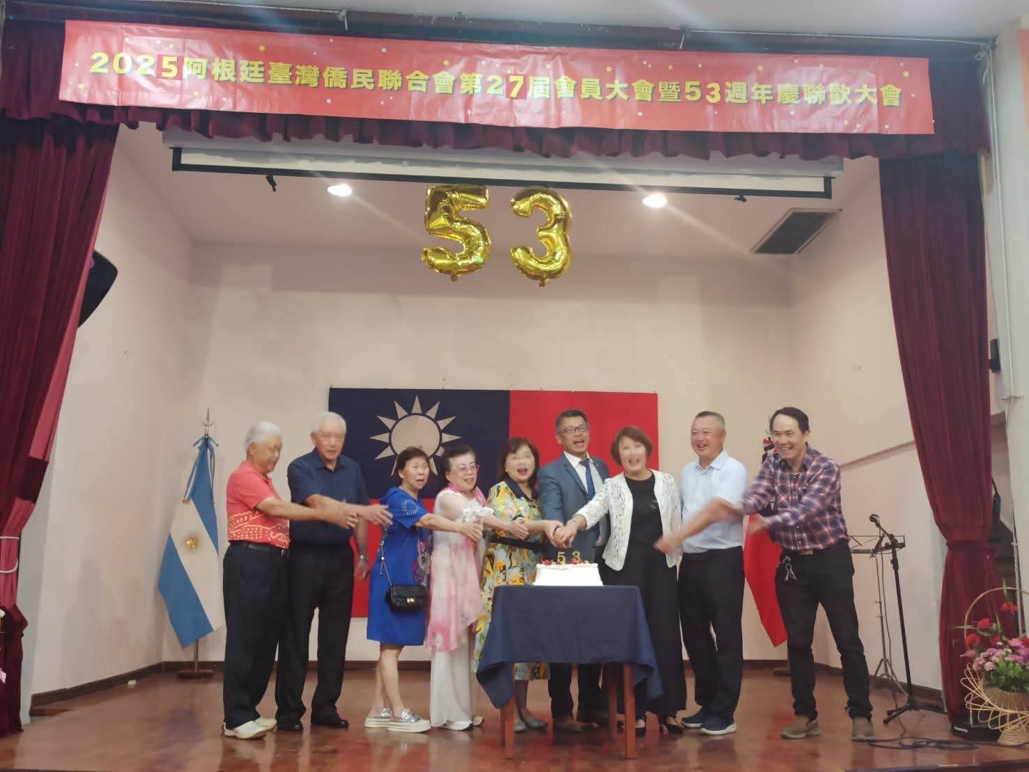 阿根廷台灣僑民聯合會於本(114)年12月14日舉辦「第27屆會員大會暨成立53週年慶聯歡會」,本處謝大使妙宏偕同仁應邀出席,並頒贈114年雙十國慶活動有功團體及個人感謝狀,以表彰僑界長期支持政府各項重要活動之貢獻。