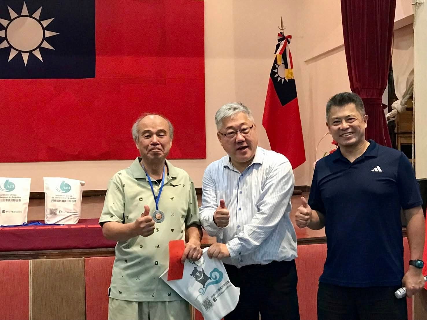 頒獎典禮中,惠副參事代表謝大使頒贈冠軍、亞軍及季軍優勝選手獎牌、獎金及獎品。此外,僑聯會洪理事長瑞堂也致贈每位參賽者新春紅包,並團體合影留念,現場充滿年節氣氛,喜氣洋洋。