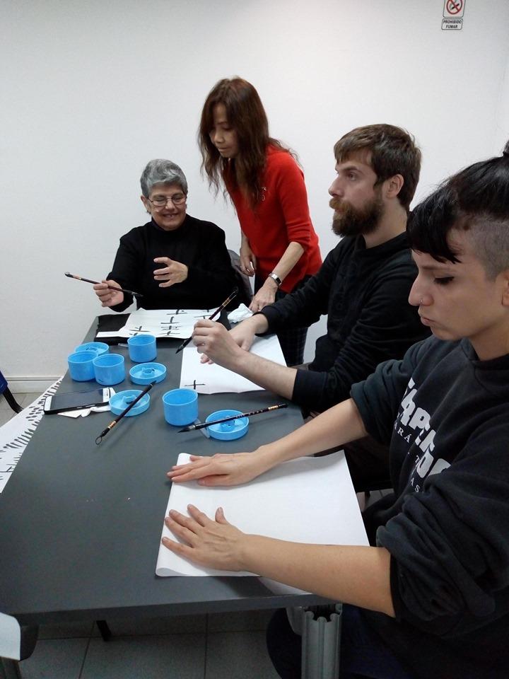 Taller de caligrafía de Taiwán en el Museo de Esculturas "Luis Perlotti" en el marco de la muestra "El Rey Mono. Títeres de Taiwán".
