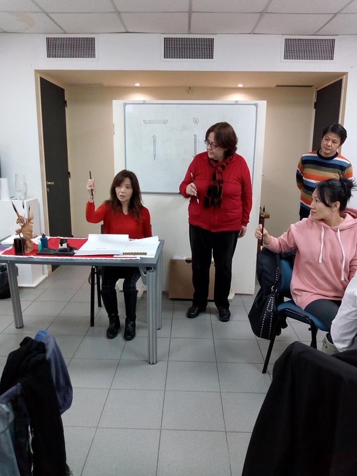 Taller de caligrafía de Taiwán en el Museo de Esculturas "Luis Perlotti" en el marco de la muestra "El Rey Mono. Títeres de Taiwán".