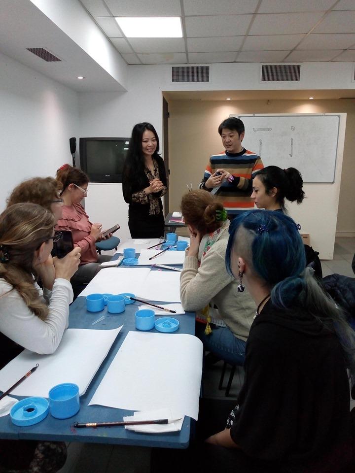 Taller de caligrafía de Taiwán en el Museo de Esculturas "Luis Perlotti" en el marco de la muestra "El Rey Mono. Títeres de Taiwán".