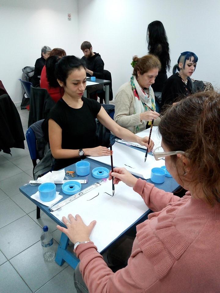 Taller de caligrafía de Taiwán en el Museo de Esculturas "Luis Perlotti" en el marco de la muestra "El Rey Mono. Títeres de Taiwán".