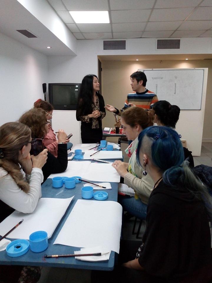 Taller de caligrafía de Taiwán en el Museo de Esculturas "Luis Perlotti" en el marco de la muestra "El Rey Mono. Títeres de Taiwán".