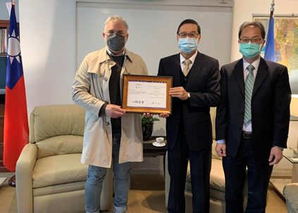 El Director General Emb. Miguel Li-jey Tsao de la Oficina Comercial y Cultural de Taipei recibió el 9 de septiembre al Sr. Martín Gorricho, el único artista preseleccionado de Latinoamérica de la Exposición Internacional de Diseño Gráfico de Taiwán.