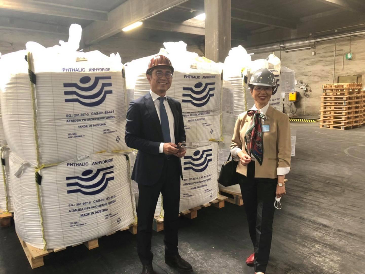 張大使表示,劉總經理領導下的Atmosa公司能提供全球高品質化工產品,尤其處於奧國嚴格環保標準及高人工成本,並面對德國BASF等大廠競爭,業務仍持續穩定發展,代表台商優秀的科技與經營能力具全球競爭力,令人敬佩。