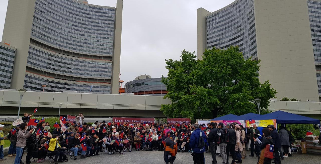 旅奧台僑大聯盟今(16)天在維也納聯合國總部前Muhammad-Asad-Platz廣場舉辦「與台灣同行」活動. 現場熱情的台灣鄉親及奧地利朋友們超過300人