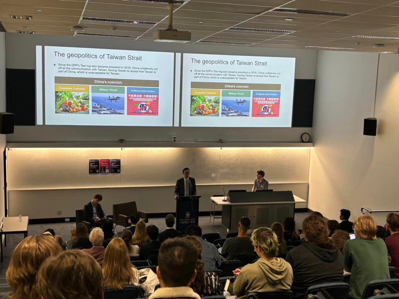Following the lecture, the audience asked Ambassador Hsu questions about issues including Taiwan identity and semi conductor industry.