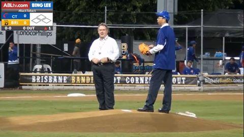 賴維中處長在昆士蘭棒球協會主席Robert Wesener陪同下擔任開球嘉賓