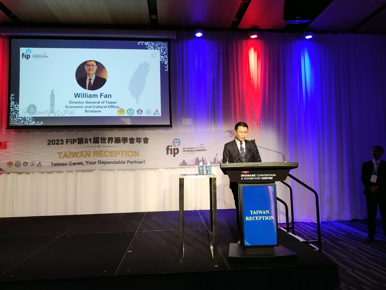 「2023 FIP第81屆世界藥學會年會」於本(9)月24日至28日在布里斯本會展中心召開,我該組織會員「社團法人臺灣臨床藥學會」(TSHP)特於25日晚間籌辦Taiwan Reception招待會,計有世界藥學會(FIP)主席Paul Sinclair、副主席Lars-Åke Söderlund、執行長Catherine Duggan等該組織重要領導階層及來自全球與會人士逾150人出席,本處范處長厚祿偕吳組長允仁亦到場共襄盛舉。 范處長應邀致詞時表示,全球醫藥衛生在新冠疫情前後發生重大變化,世界各國須共同合作始能面對未來挑戰,以加速實現聯合國永續發展目標(SDGs),與落實WHO憲章「健康是基本人權」及「不遺漏任何人」之願景,同時籲請與會貴賓堅定支持台灣參與UN及納入WHO,讓台灣出席WHA以及參與UN、WHO等SDG相關之各項會議、機制及活動。