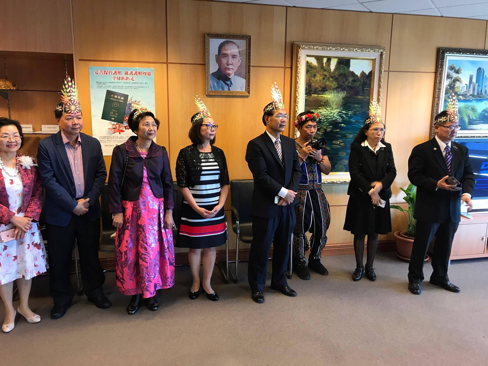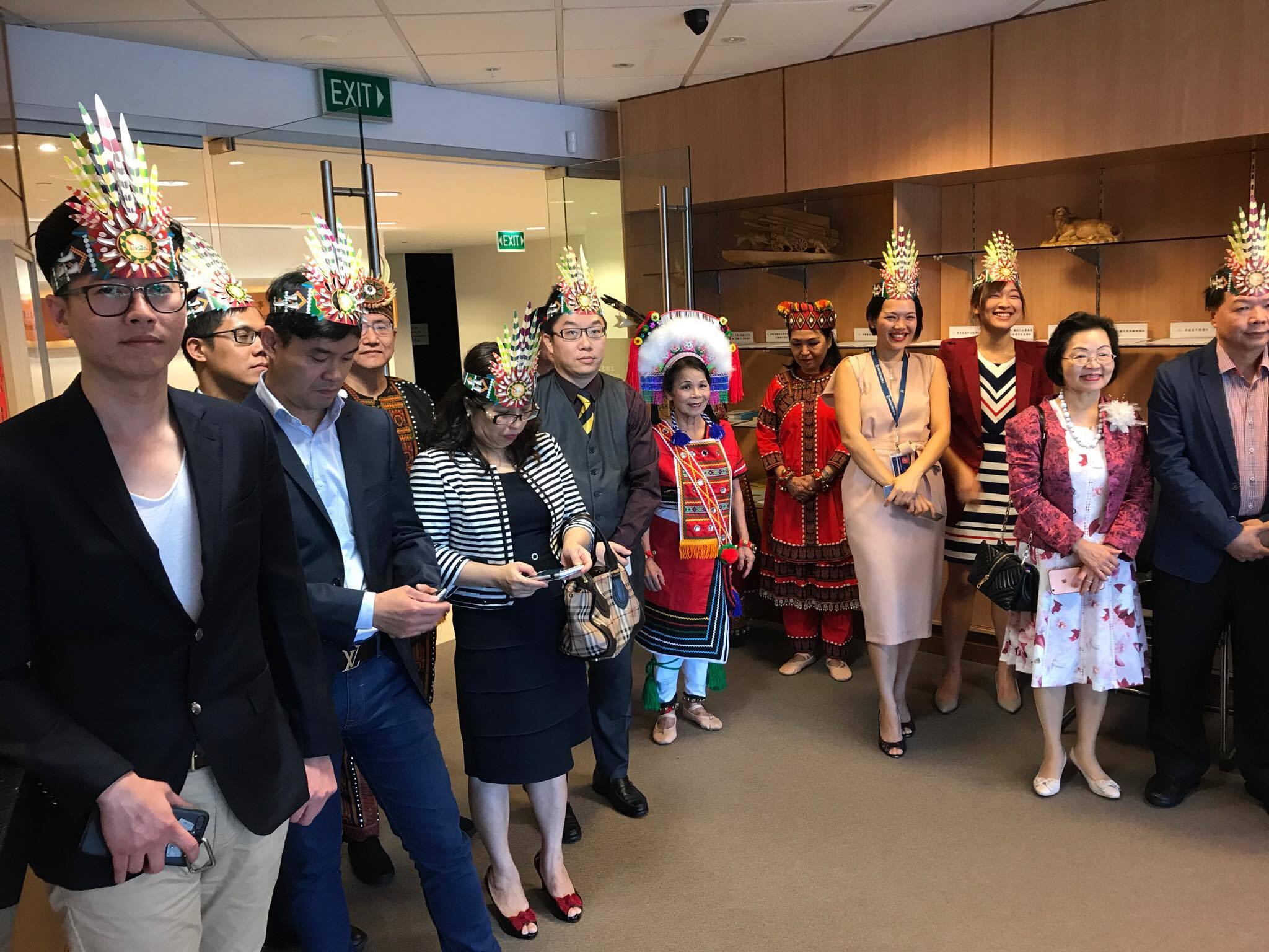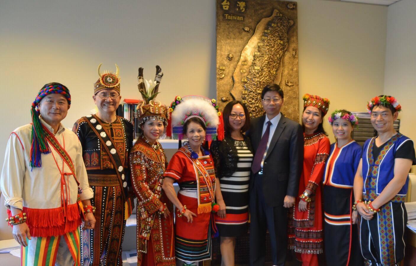 台灣舞蹈團身穿台灣原住民服裝迎賓