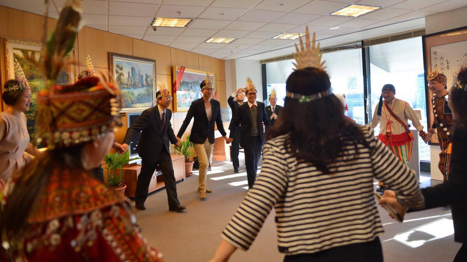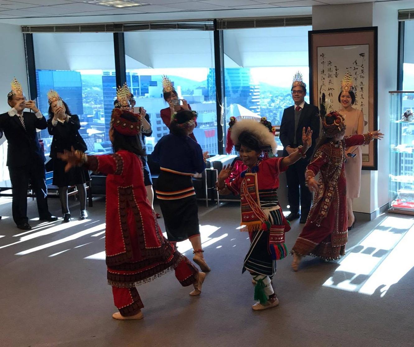 台灣舞蹈團於儀式上表演原住民舞蹈與現場來賓同樂