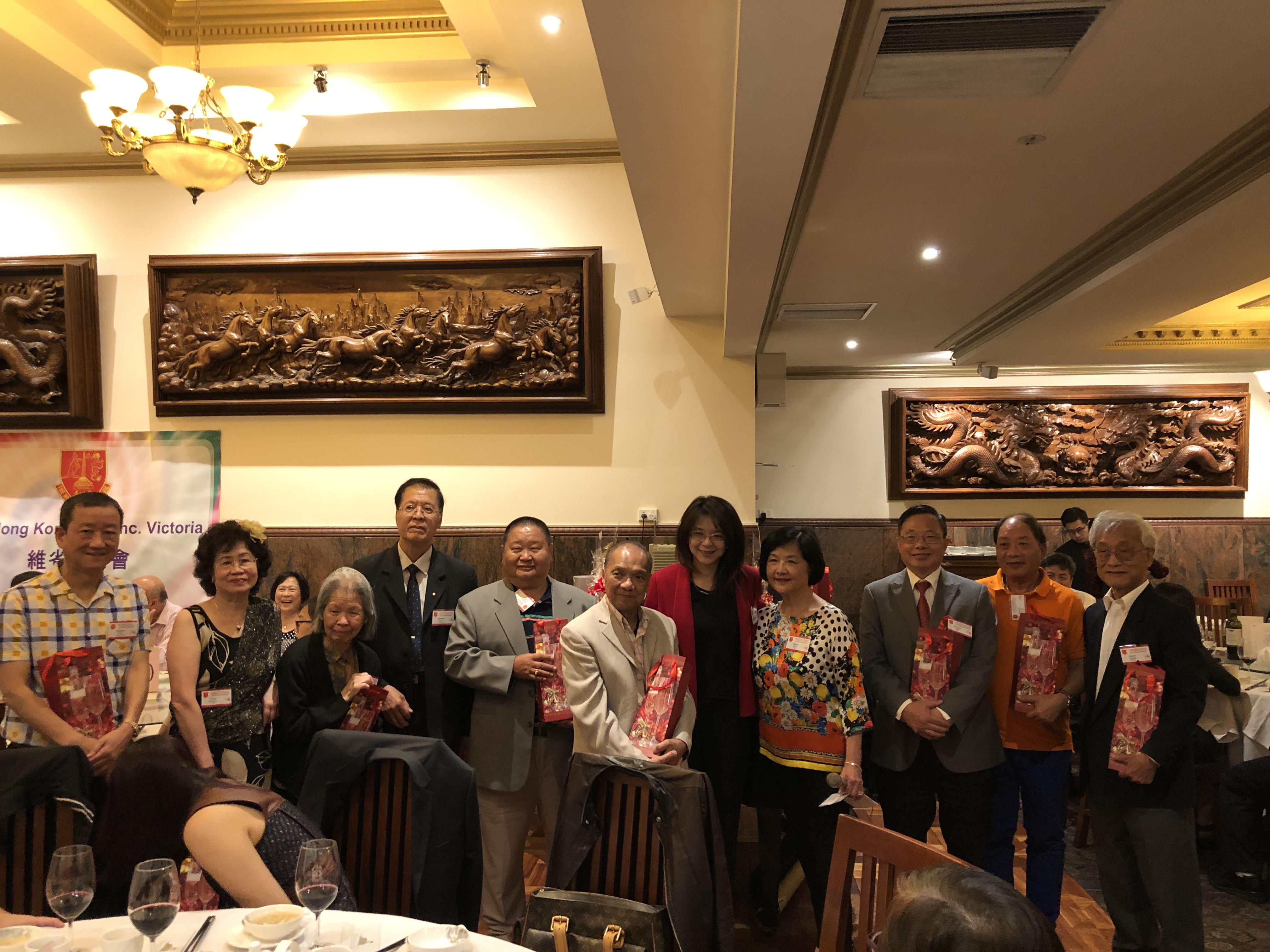 維省香港會於本(107)年2月19日晚間舉辦2018年新春團拜餐會,本處陳處長瓊玉偕同仁應邀出席。除該會會長許雷麗君外,僑務委員劉國強、僑務顧問黃肇聰、李珮玲、僑務促進委員陳特輝、姜為開,墨爾本臺灣商會會長蕭祖淵、榮譽會長戴榮良等僑領,以及該會理監事及會員等熱鬧與會。