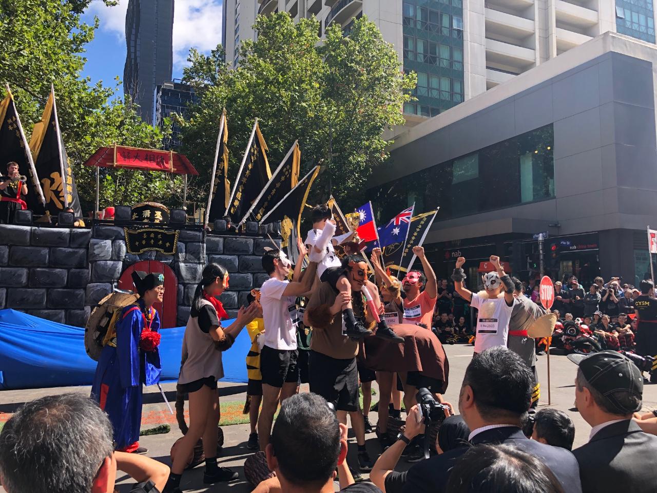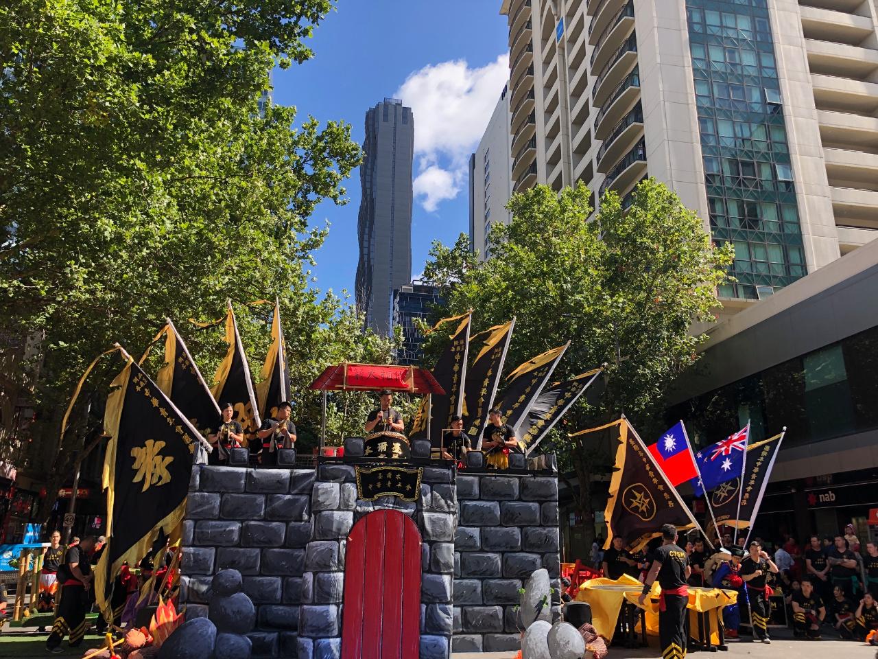 節目首先由中華青年會代表致詞為活動暖場,並由充滿年節氣氛的鼓陣表演拉開序幕。緊接著上演12生肖起源的神話故事,並由中華青年會成員表演舞龍、舞獅等精彩節目,現場吸引數百人聚集觀賞,節目精彩逗趣,觀眾報以熱烈掌聲。當日活動除了向當地主流社會人士及各國遊客展現我國濃郁的傳統節慶文化特色外,現場中華民國國旗隨風飄揚,也展現中華青年會長期對中華民國的支持,成功凝聚墨爾本僑界向心。