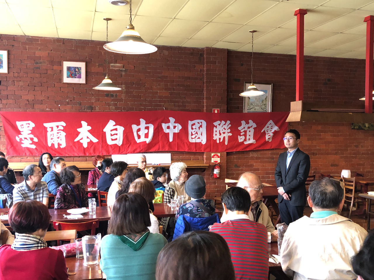 「墨爾本自由中國聯誼會」4月9日在Sofia Restaurant舉辦新春會員 大會,駐墨爾本辦事處副組長王偉年及僑務秘書康雅雄應邀出席, 會長錢培瑤、僑務顧問康筱釧、郝家蘭、楊瑾玲、前會長吳東露、 理監事及會員約60人熱情參與。