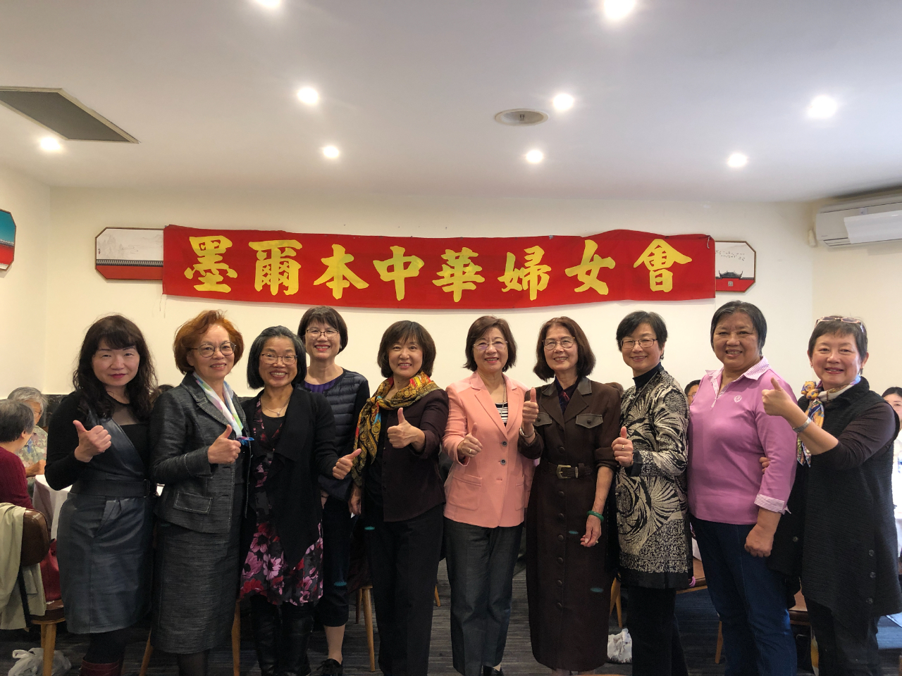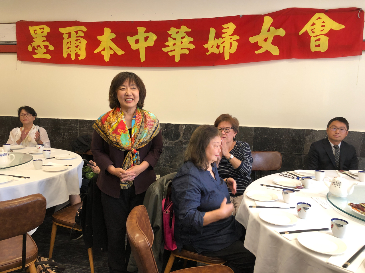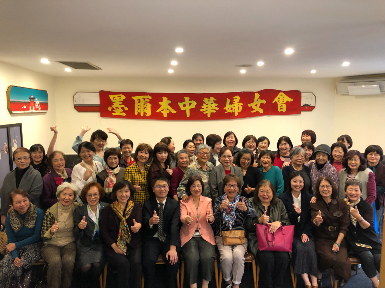 「墨爾本中華婦女會」4月15日在「鮮生您好」餐廳召開第45屆會員大會,駐墨爾本辦事處副組長王偉年、秘書李函及僑務秘書康雅雄應邀出席,榮譽會長王桂鶯、會長郝家蘭、僑務顧問康筱釧、楊瑾玲、理監事及會員約50人熱情參與。