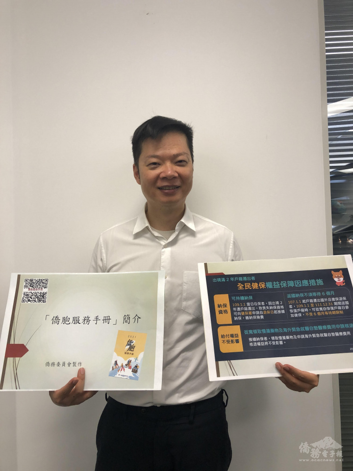康雅雄表示,僑委會委員長童振源上任以來,以前瞻性思維面對疫後新趨勢,為擴大服務僑胞量能,推出史上首部工具書—「僑胞服務手冊」,內容彙整了各項僑胞權利與義務,如護照申領、停居留及定居設籍、僑民兵役、社會保險、在臺投資、個人海外所得稅課稅規定、返國行使選舉權及公民投票權、出國逾2年戶籍遷出影響、僑民防疫諮詢服務等等,提供全方位資訊給全球僑胞參考,希望今天的說明會可以帶給大家滿滿的收穫。