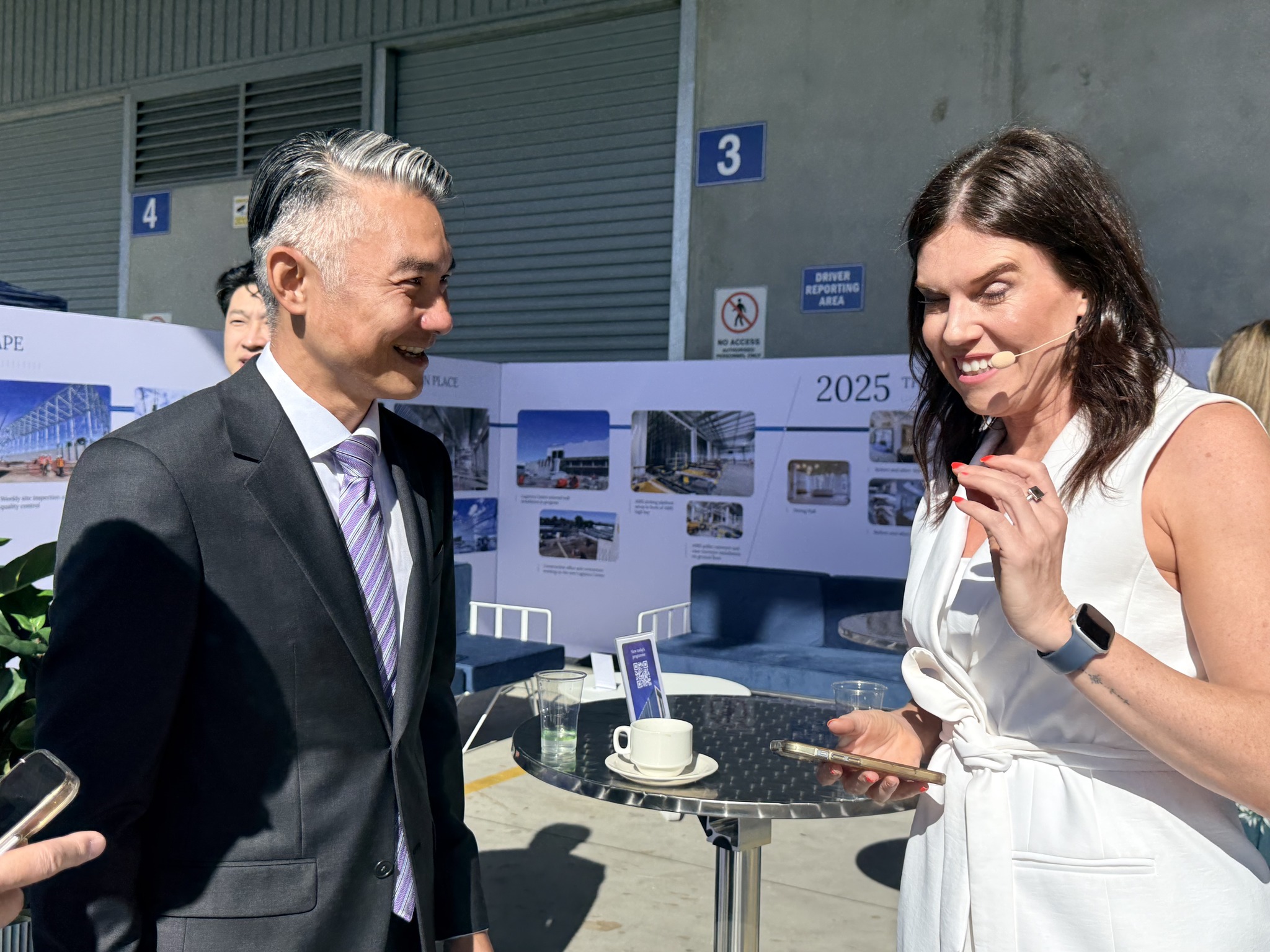 Speaking with a Victorian Government Minister during the event and exchanging views on the new facility and local industry development.