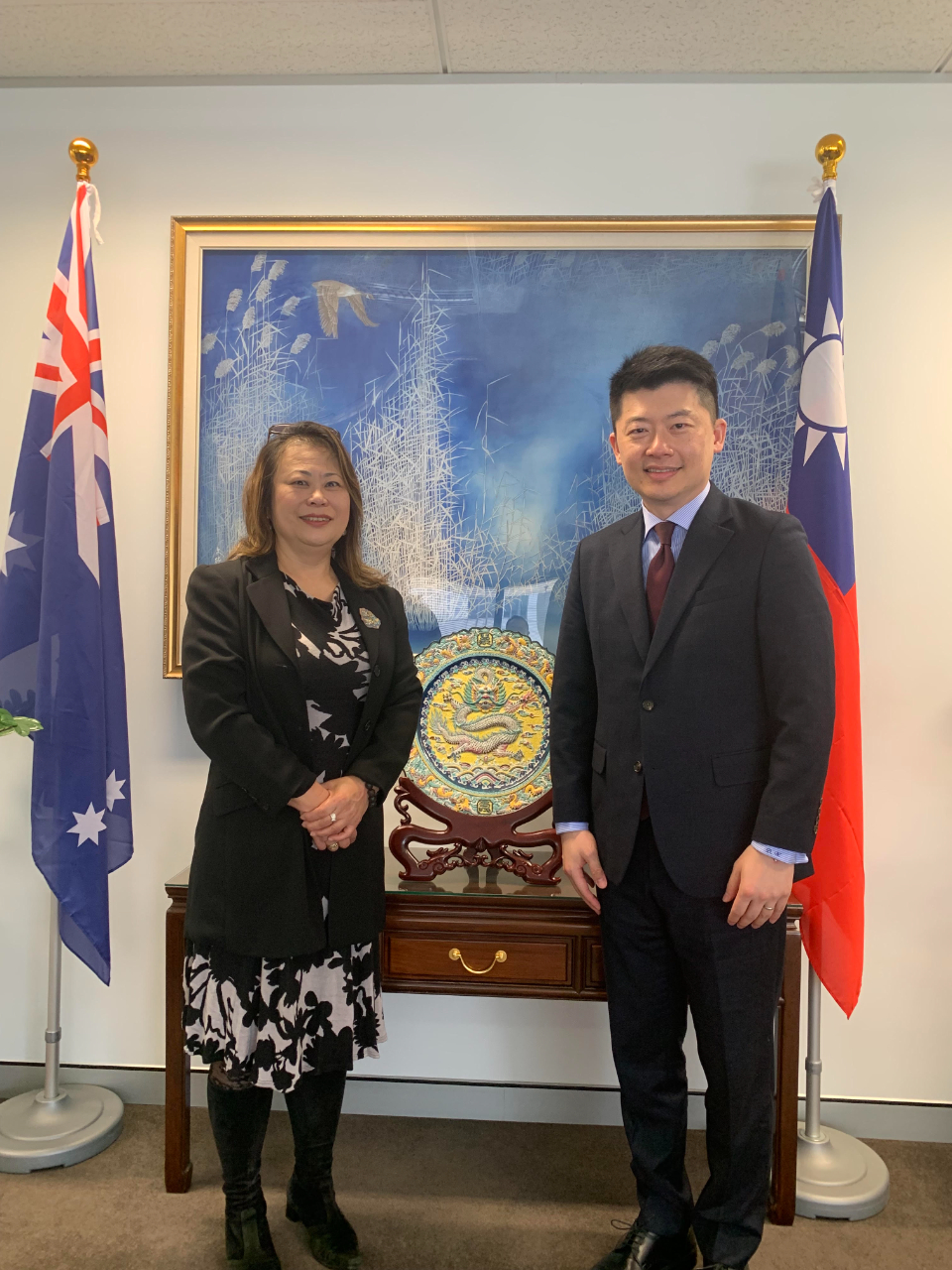 吳正偉處長很高興接待澳台工商委員會(ATBC)執行長段菁梅女士,並就台澳雙邊的經貿合作與FTA/CPTPP相關議題交換意見。吳處長也藉此機會感謝ATBC長年對台灣的支持,辦事處將續與ATBC攜手強化台灣與新南威爾斯州及澳洲的夥伴關係。