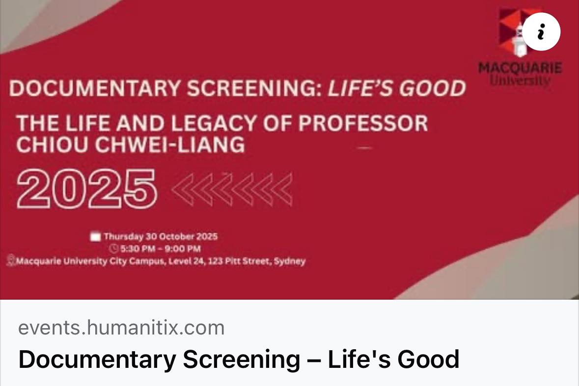 邱垂亮教授紀錄片《南半球最璀璨的星星-Life's Good》即將於 10月30日在雪梨放映,吳正偉處長夫婦應邀與本片導演陳麗貴女士伉儷餐敘。陳導演分享了幕後製作點滴與創作理念,讓我們對這部紀錄邱教授對臺灣民主貢獻的影片更為期待。