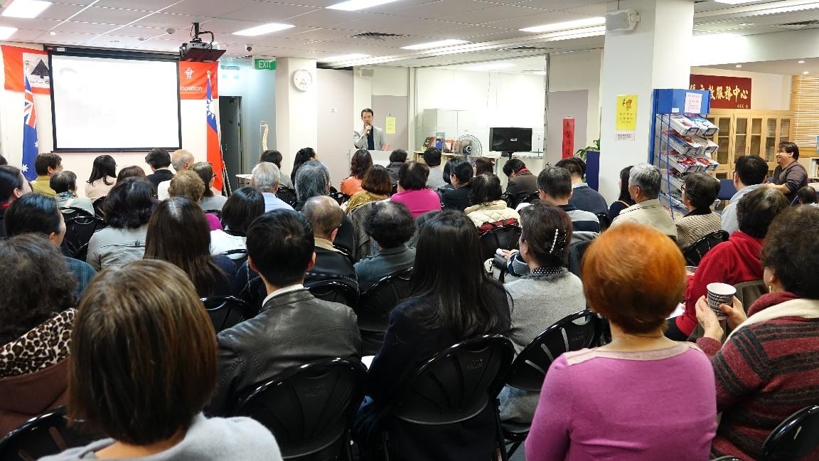 出席來賓約80人,講座結束後,澳洲台灣同鄉會並提供台式美食點心供與會者享用,賓主盡歡,圓滿成功。