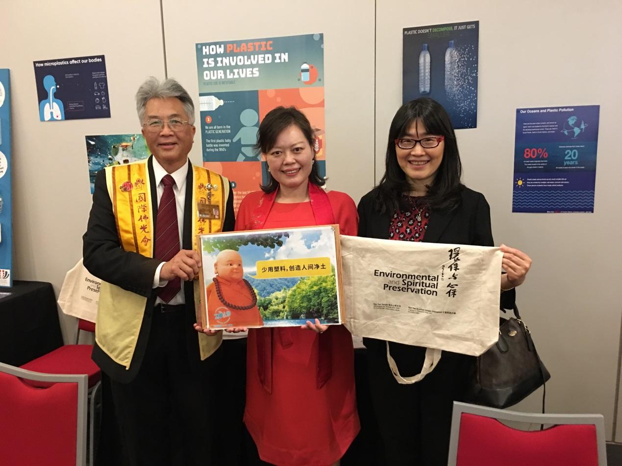 活動現場安排茶禪師奉茶給出席貴賓,另外並舉行愛護地球、提倡少用塑料、創造人間淨土的活動。王處長現場接受佛光山人間衛視專訪,對星雲大師近80年間以歡喜心弘揚佛法、創造人間淨土的心表達敬意與感佩,亦現場簽署「環保宣言」,為環境保護盡一份心力。活動計有數百位民眾參與,氣氛祥和圓滿。