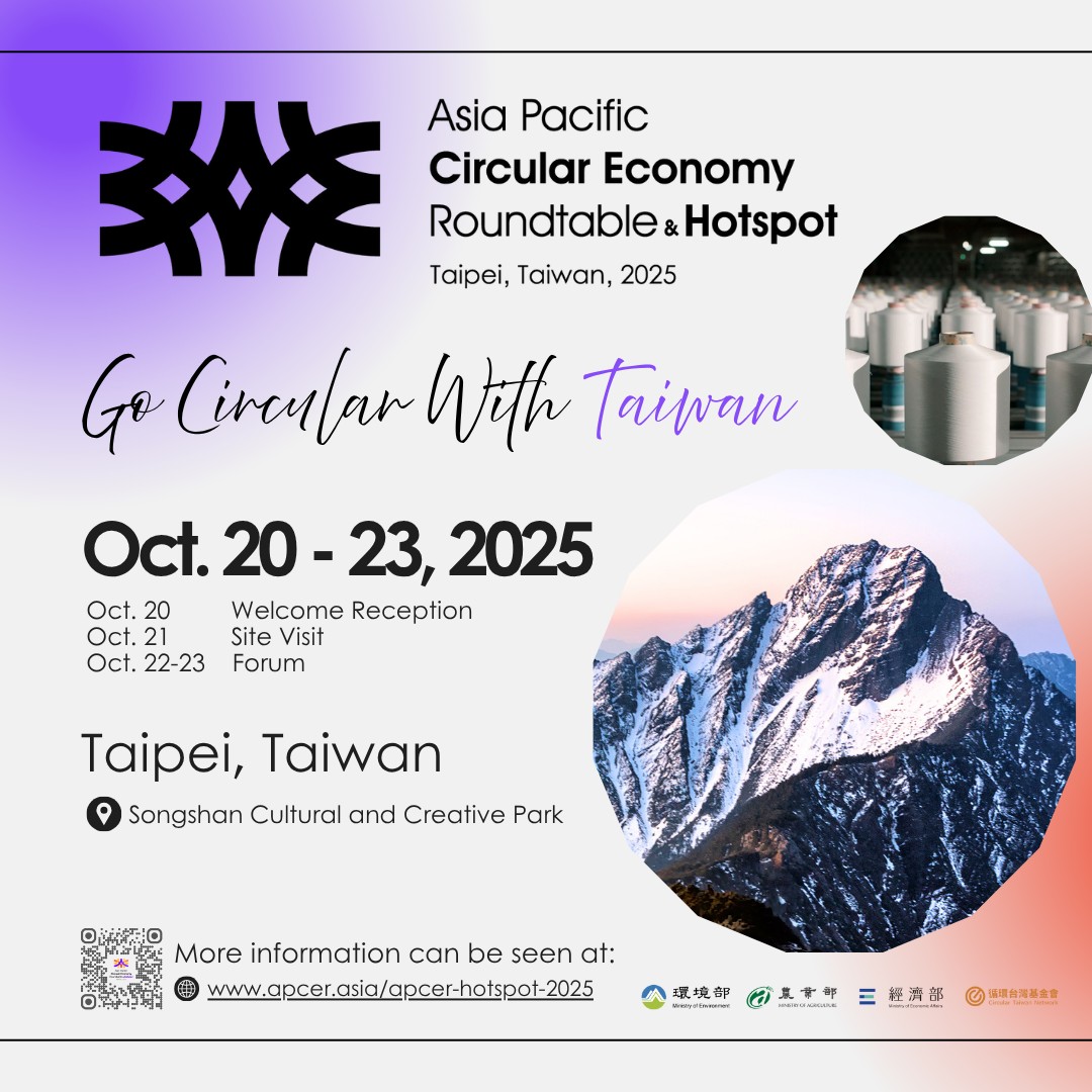 今年活動將結合亞太循環經濟論壇(APCER)與循環經濟熱點(Circular Economy Hotspot),由環境部、經濟部、農業部及循環台灣基金會共同攜手舉辦,將透過公共對話、國際鏈結與政策落實,分享臺灣成功經驗,推動亞太地區循環經濟合作與發展。 誠摯邀請全球循環經濟領域各界代表齊聚臺北,交流創新理念,推動綠色永續未來!