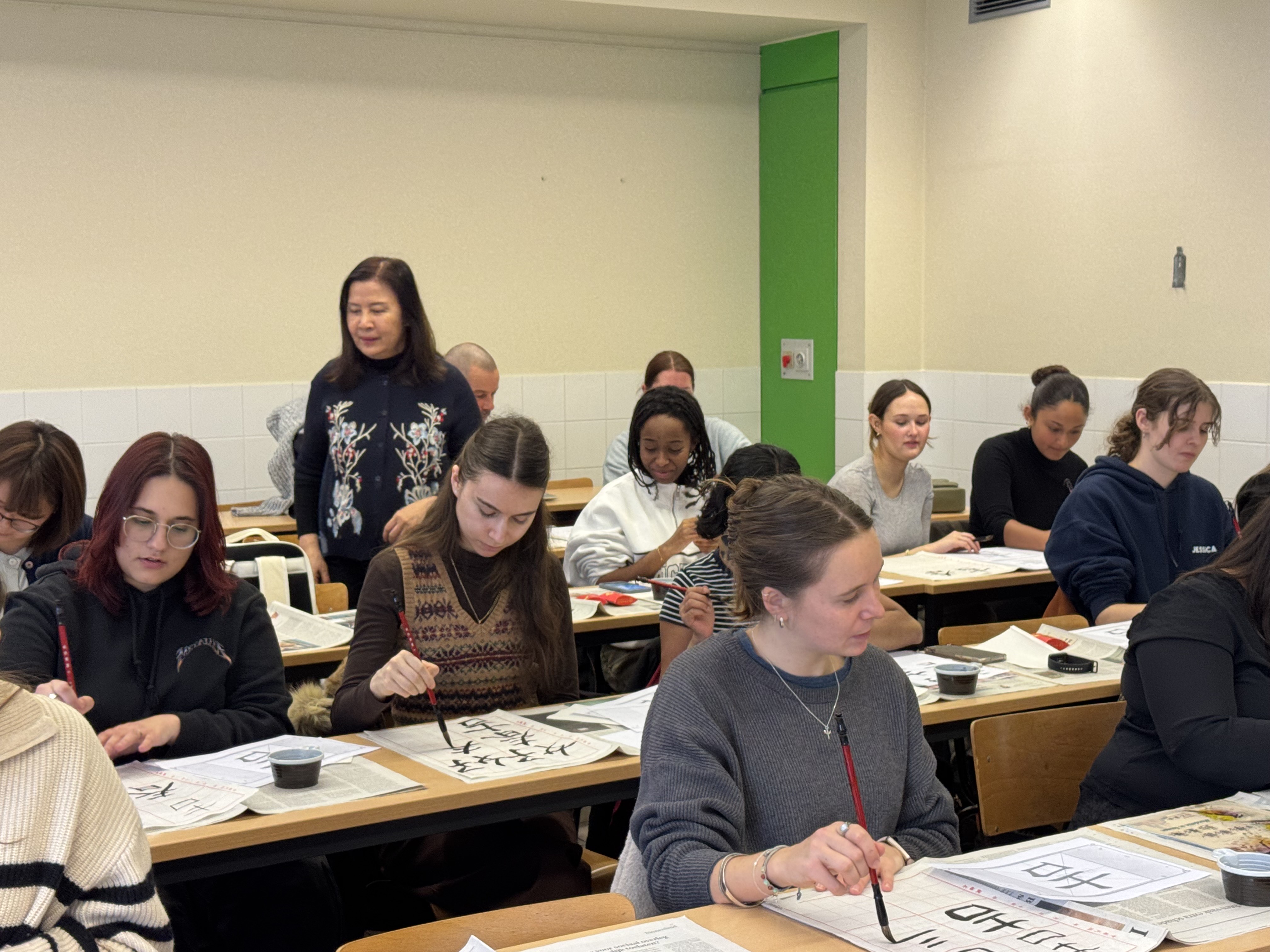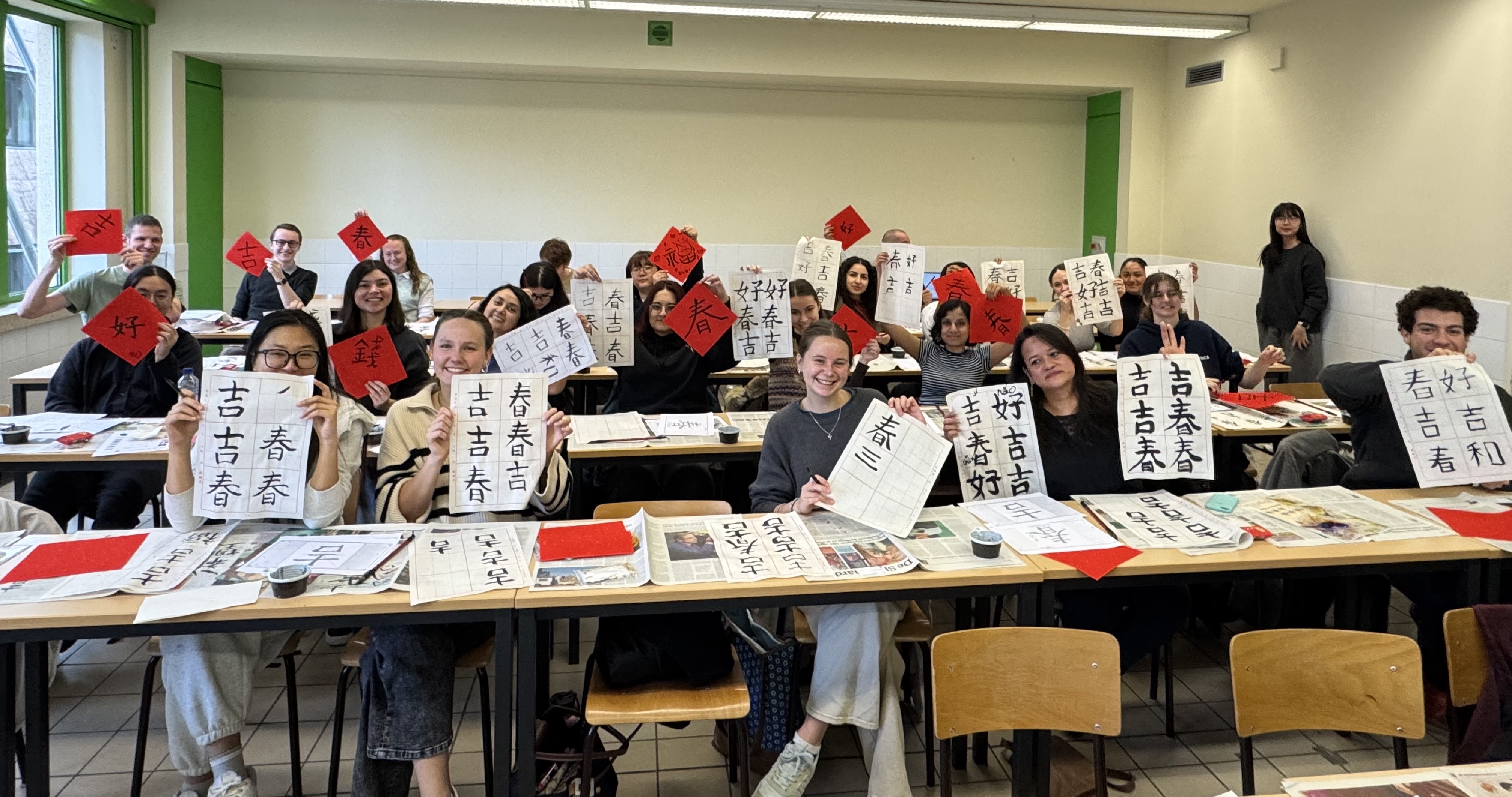 駐歐盟兼駐比利時代表處多年來與魯汶大學合作在布魯塞爾校區開設中文課程。為進一步加深學生對臺灣文化的了解,並向他們介紹臺灣的教育環境及留學機會,駐歐盟代表處教育組與魯汶大學於2026年2月12日聯合舉辦了一場臺灣書法及製作春聯體驗活動,作為為慶祝魯汶大學建校600週年而舉辦的「多語言文化週」系列活動之一。
