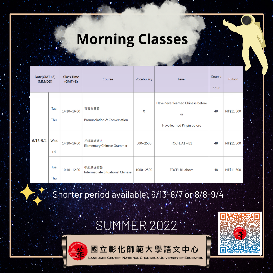 National Changhua University of Education(NCUE) online Mandarin course in Summer 2022