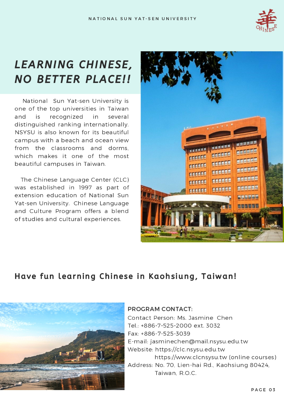 National Sun Yat-sen University (NSYSU), one of the top universities in Taiwan with the most beautiful campus located at the beach in Kaohsiung, again offers a Summer Intensive Mandarin Program for students in the summer of 2024.