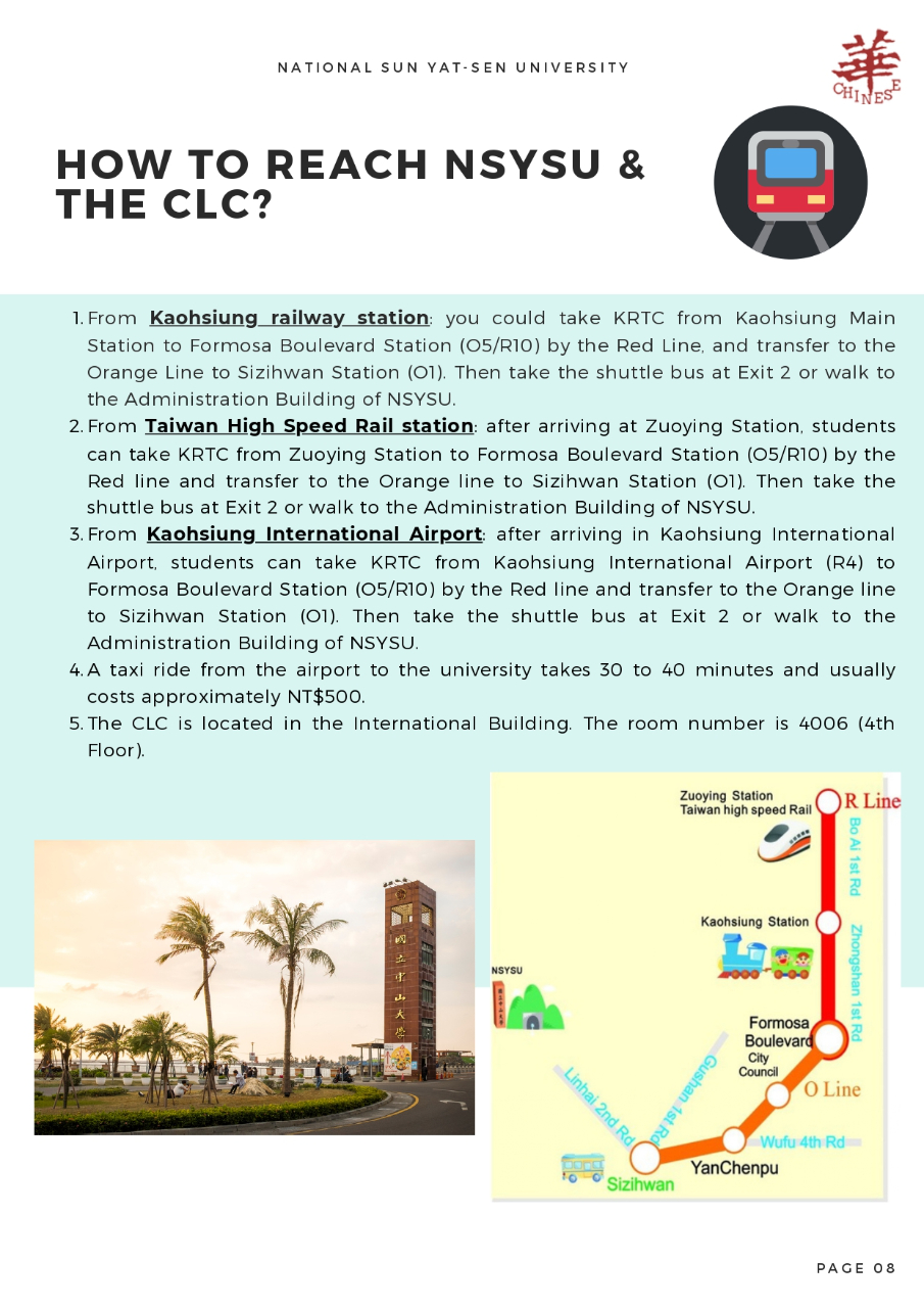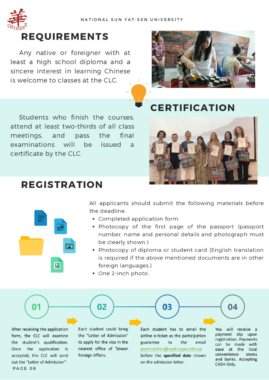 In order to apply for program participation, please fill in the application form and send it to jasminechen@mail.nsysu.edu.tw . In order to apply for the stipend, please add your information to the stipend form below and send it to kellyvandepaer@mail.moe.gov.tw .
